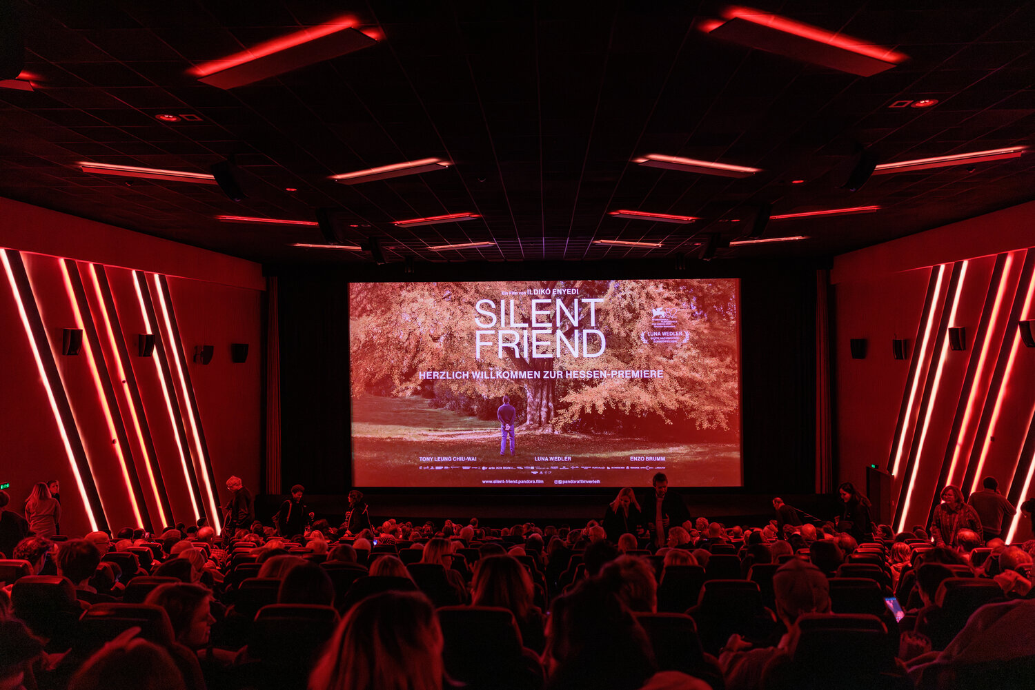 Regisseurin Ildikó Enyedi präsentierte ihr Werk gemeinsam mit Luna Wedler und Enzo Brumm persönlich dem Publikum. Kulturminister Timon Gremmels begrüßte die Gäste und unterstrich die Bedeutung von »Silent Friend« für den Filmstandort Hessen - als international gefeiertes Werk mit starker regionaler Verankerung. Für uns, die Hessen Film & Medien, war unsere Geschäftsführerin Anna Schoeppe mit Team vor Ort.